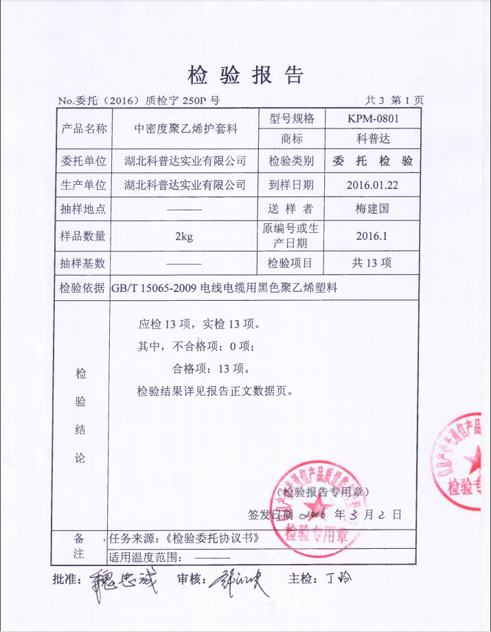 上一篇:2016線性低密度護(hù)套料檢測報告(KPL-0803)
