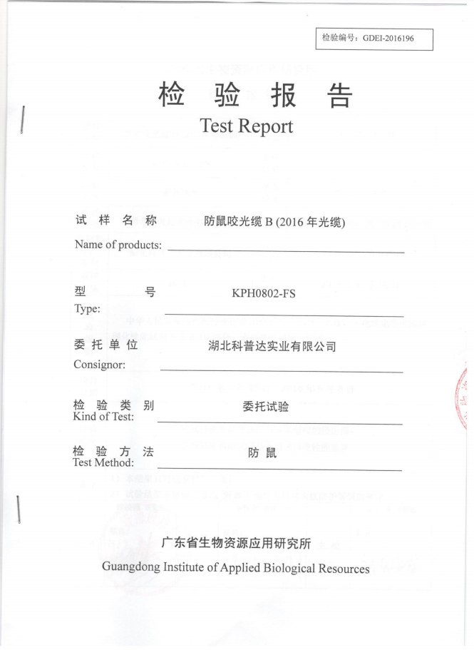 科普達(dá)防鼠咬光纜檢測(cè)報(bào)告KPH0802-FS(B樣)