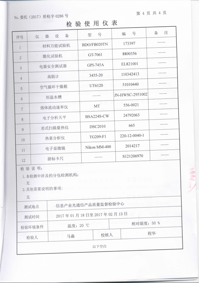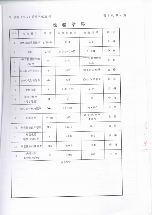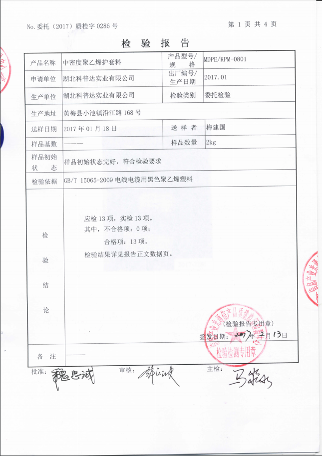 中密度聚乙烯護套料檢驗報告2017.2.13