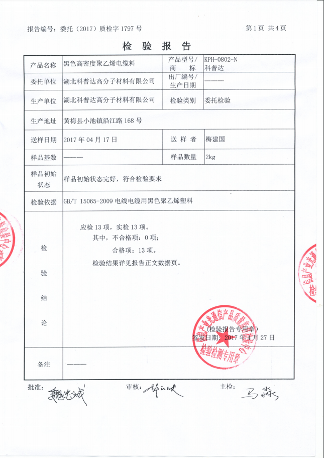 科普達產品主要有各種光纜護套料,榮獲湖北省名牌產品,守合同重信用企業。 榮獲多種國家資質認證包括:ISO9001質量管理體系認證、ISO14001環境管理體系及OHSAS18001職業健康安全管理體系認證。...